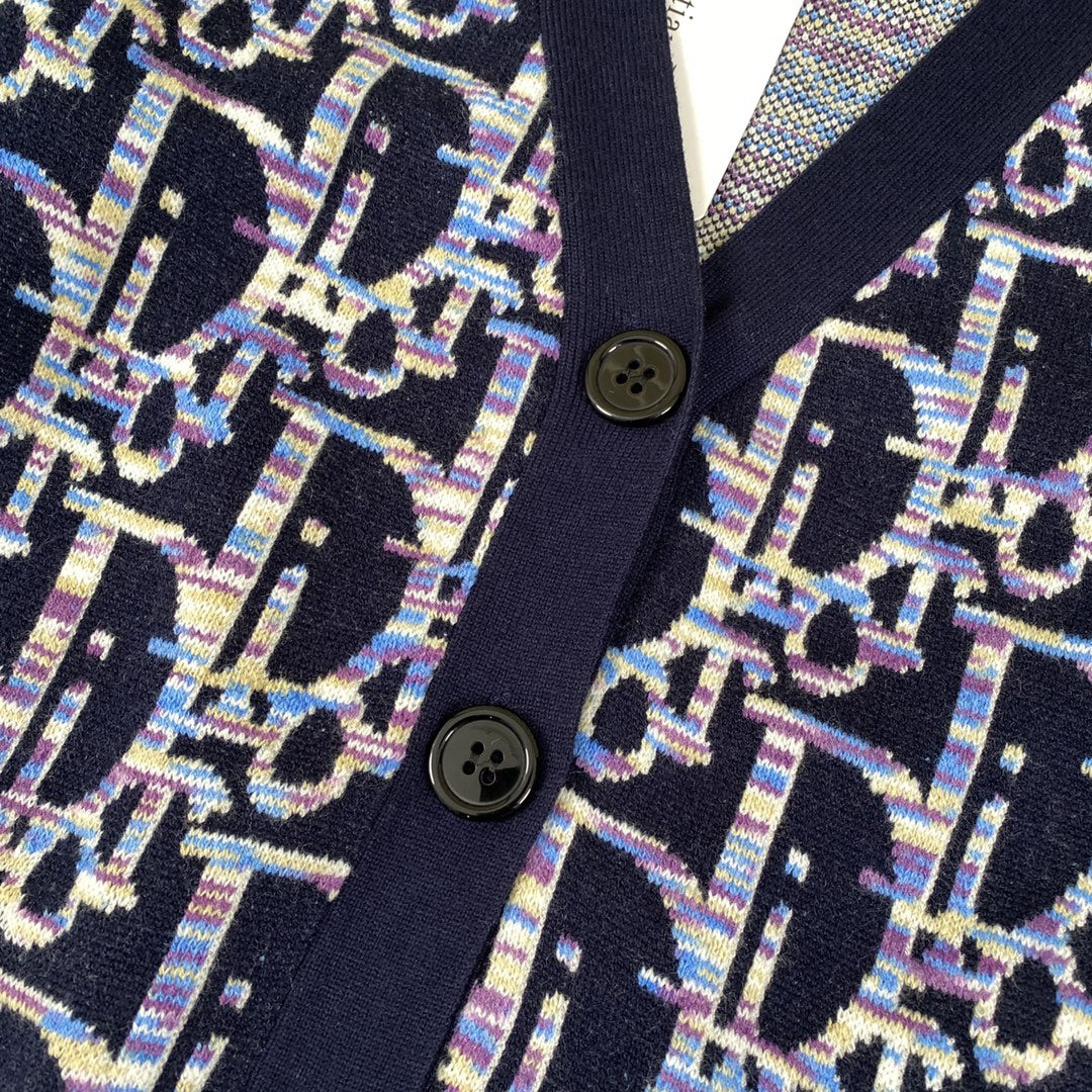Dior 2024SS Blue Lambswool Jacquard V-Neck Cardigan
