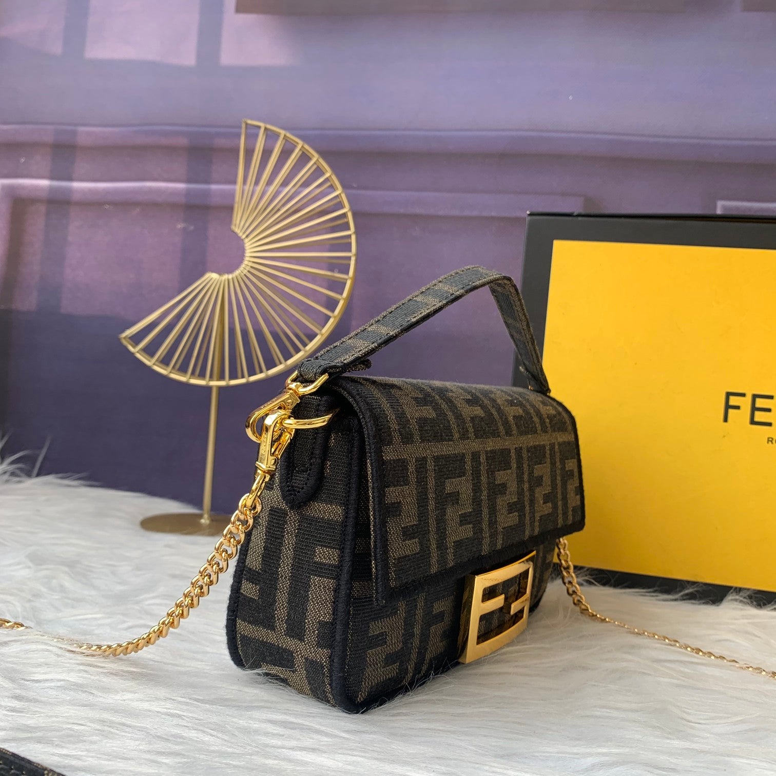 Features: Flap closure, metallic leather, all-over FF pattern, detachable and adjustable straps