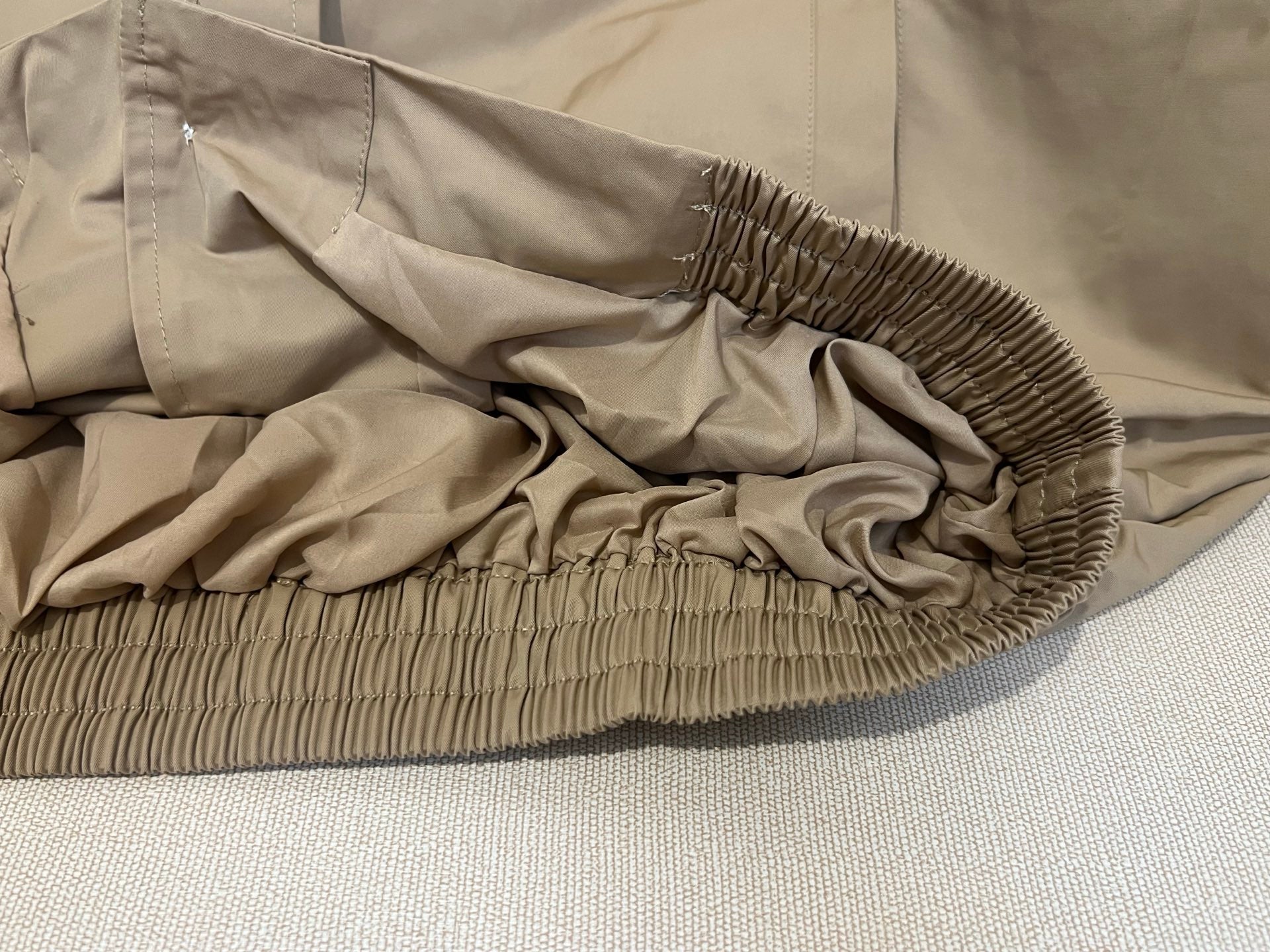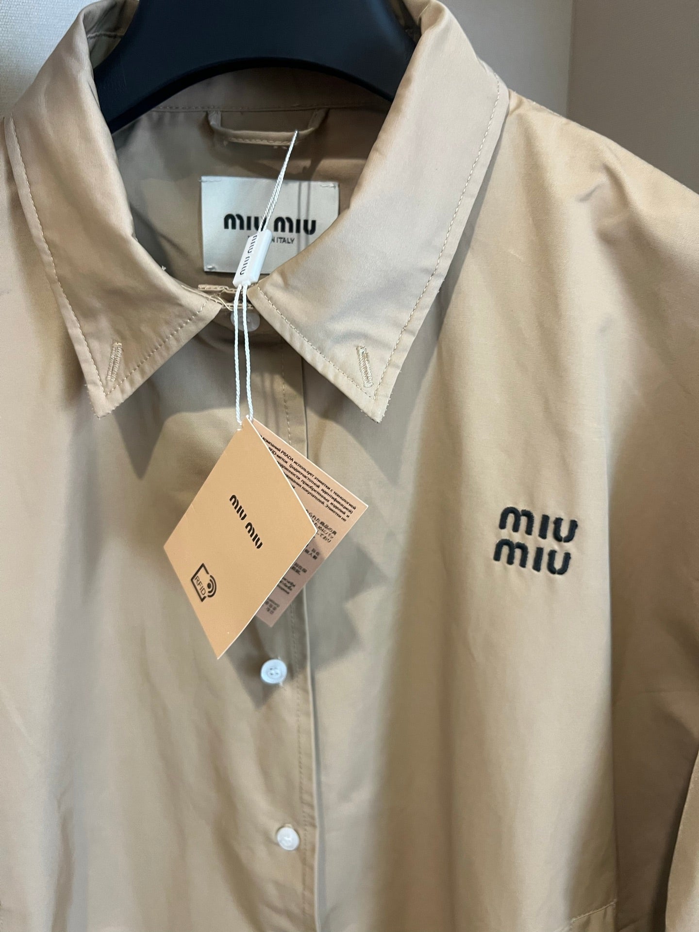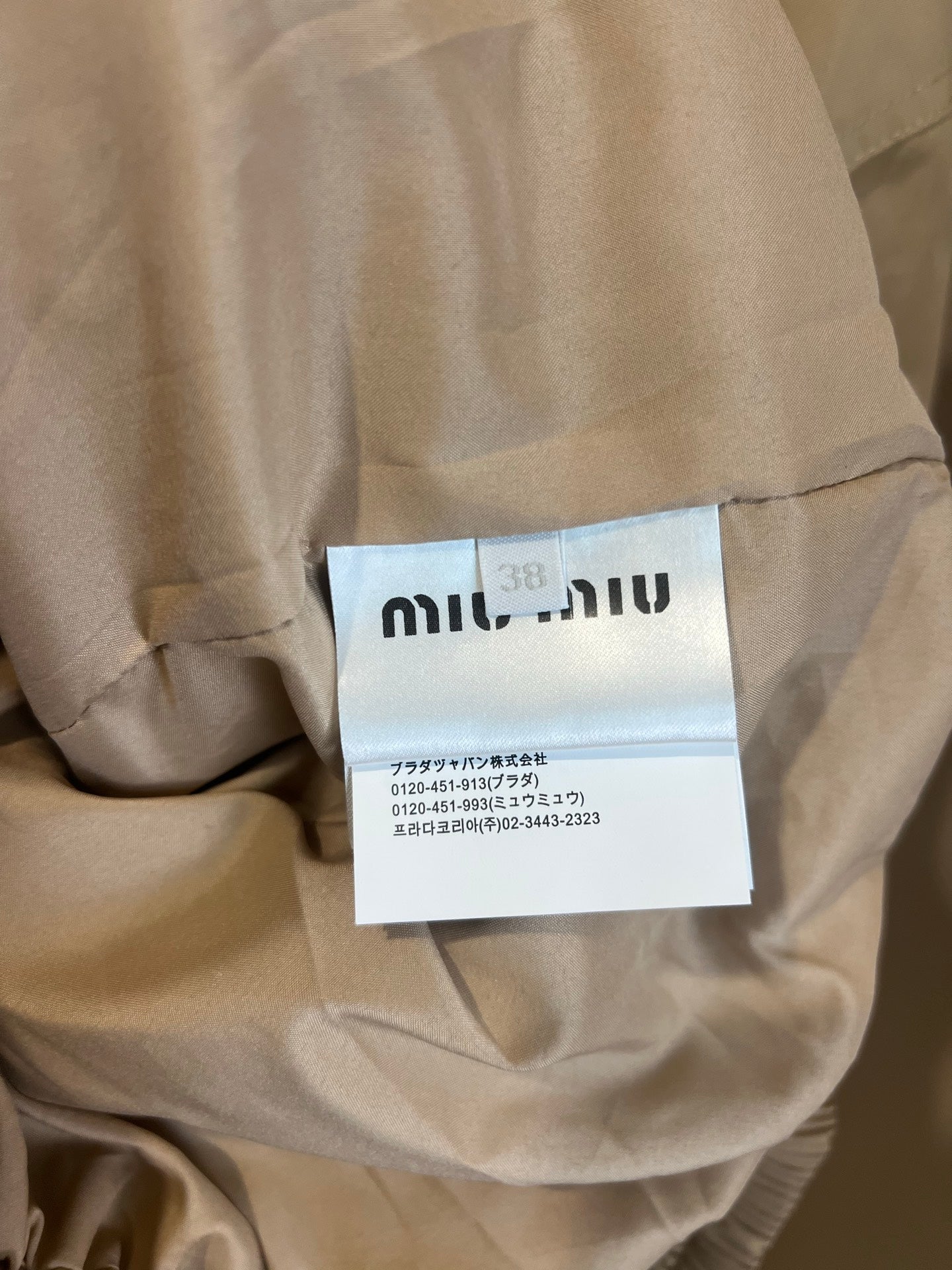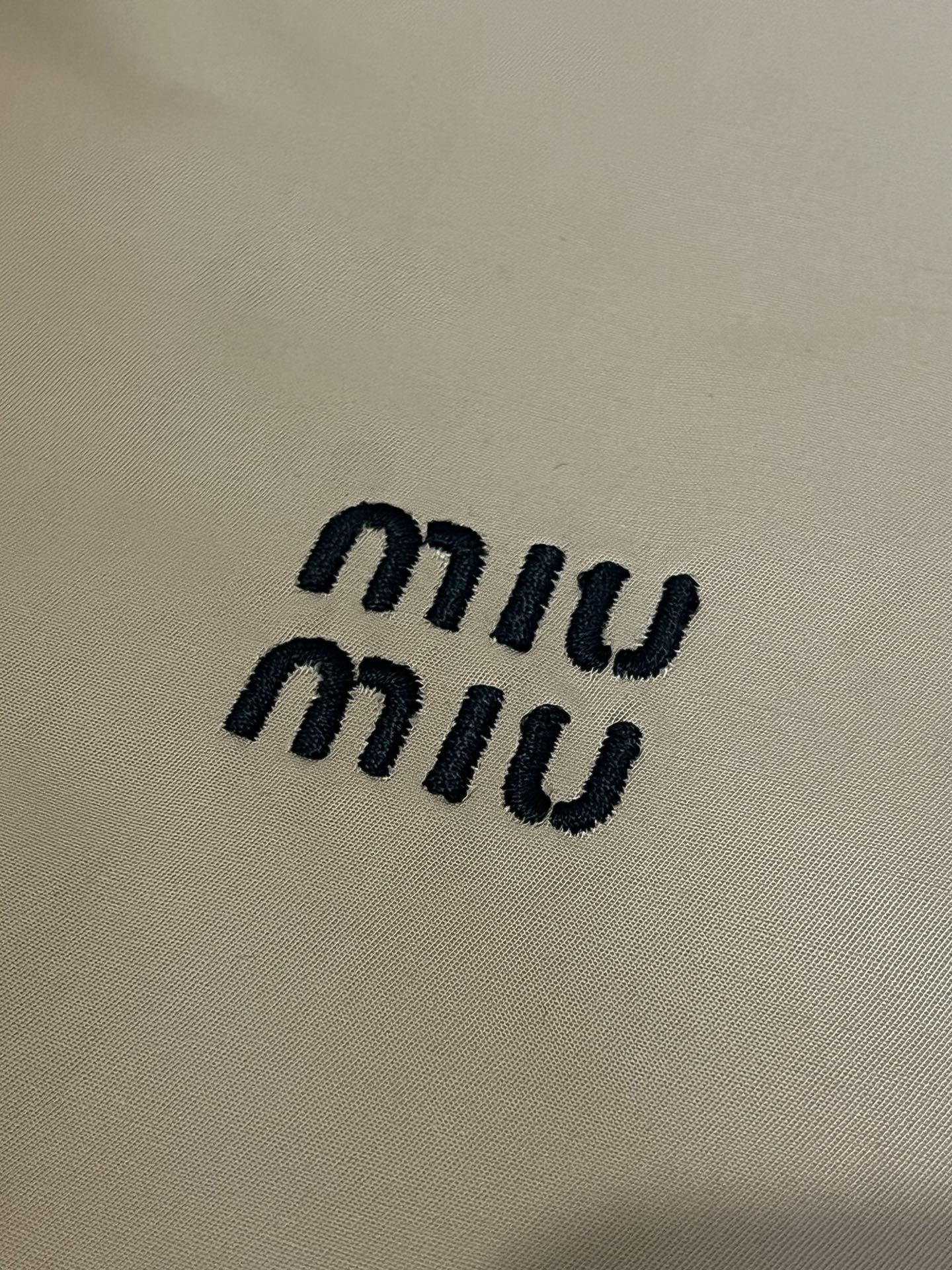A must-have early autumn jacket. This MIU MIU jacket features luxurious double-weave jacquard fabric and a cotton-Tencel plain weave lining. The warm and rich khaki base color, combined with a tapered hem, highlights the fabric and design details, creating a stylish and minimalist look. A truly outstanding piece that’s essential for your wardrobe!