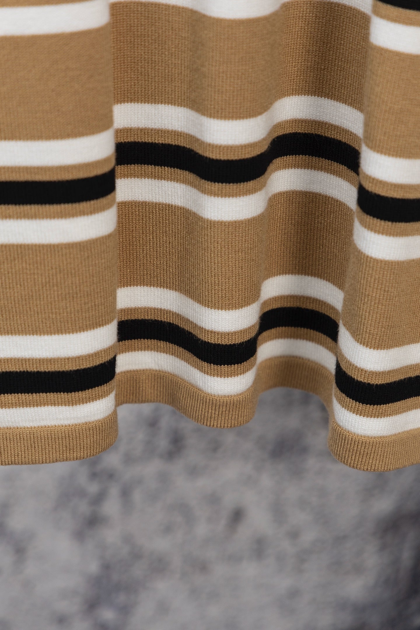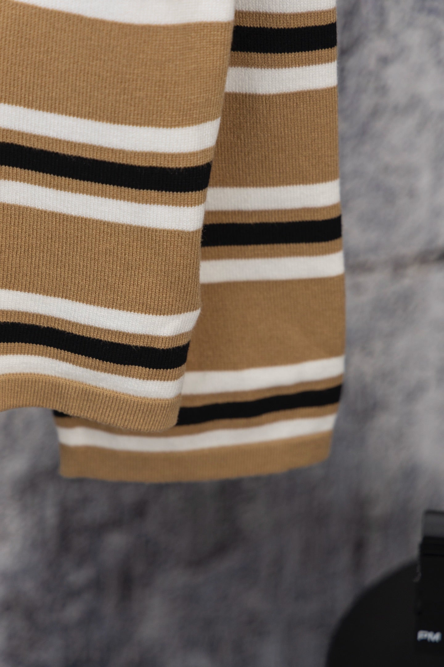 This 2025 MIU MIU release features an embroidered pocket with letter detailing and classic stripe design on a stylish polo collar. Made from premium 100% cotton, it offers a super soft and comfortable feel while remaining fashionable and unique. Versatile and easy to match, this long-sleeve tee is a must-have wardrobe staple loved by influencers and celebrities. Comes complete with original packaging, hang tag, neckline label, and care instructions.