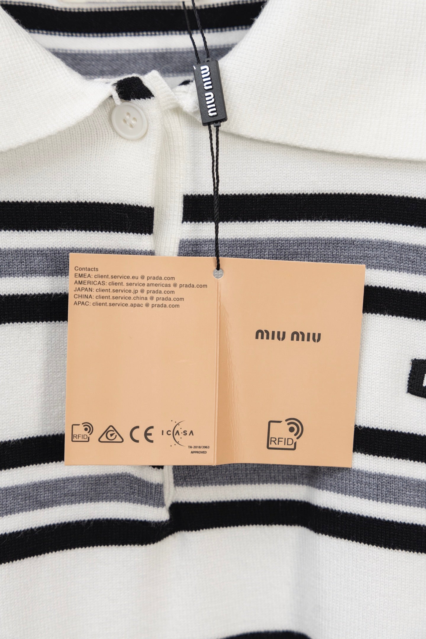 MIU MIU 2025 New Embroidered Pocket Letter Stripe Polo Long-Sleeve T-Shirt – Premium Version