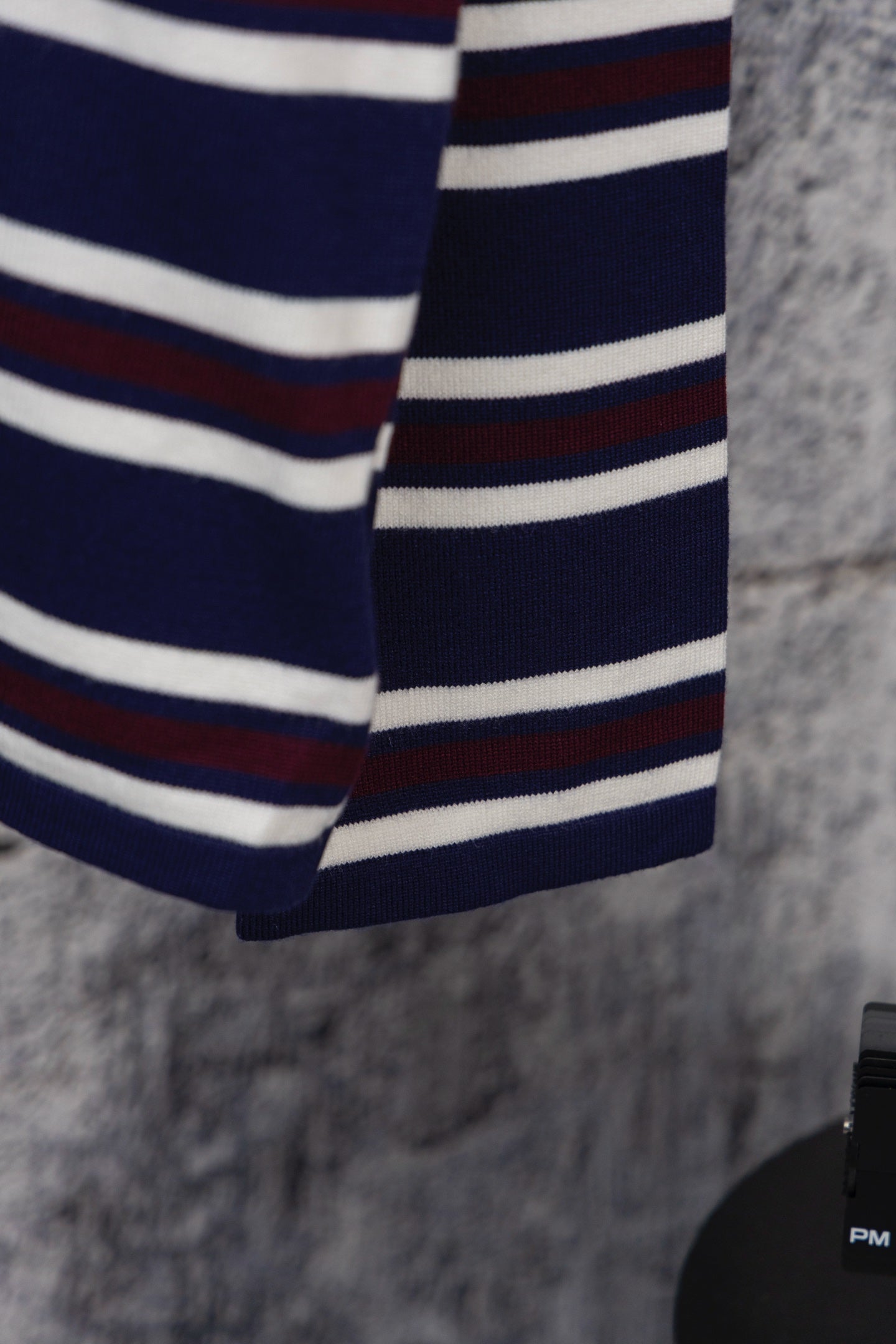 MIU MIU 2025 New Embroidered Pocket Letter Striped Polo Long-Sleeve T-Shirt