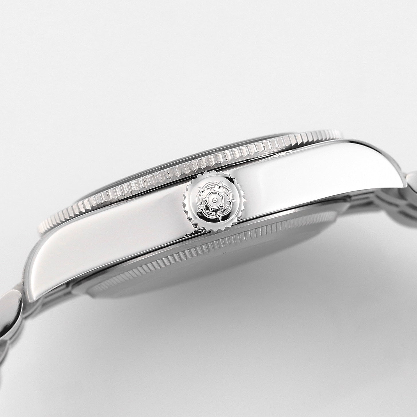 The crown is adorned with an embossed Tudor rose logo, enhancing brand recognition with intricate detail. The "T-fit" clasp allows for quick and easy adjustments, offering a flexible 8mm length adjustment for a customized fit. The curved sapphire crystal provides excellent scratch resistance, protecting the dial from external damage while ensuring a clear visual experience.