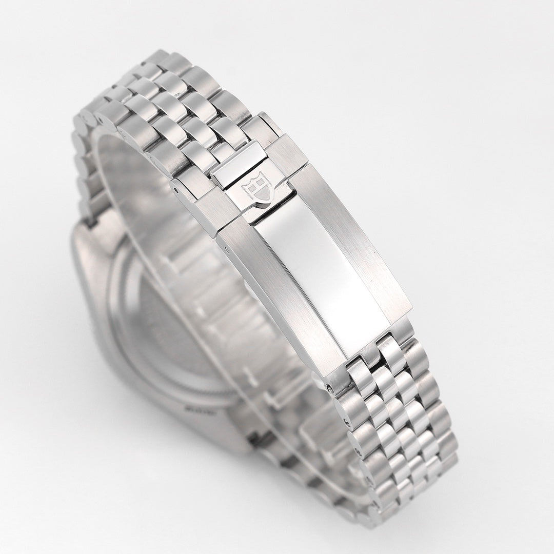 Each link in the five-link bracelet is meticulously polished for a refined finish. The 41mm case is versatile, perfect for both everyday wear and making a statement with its elegant yet sporty presence.