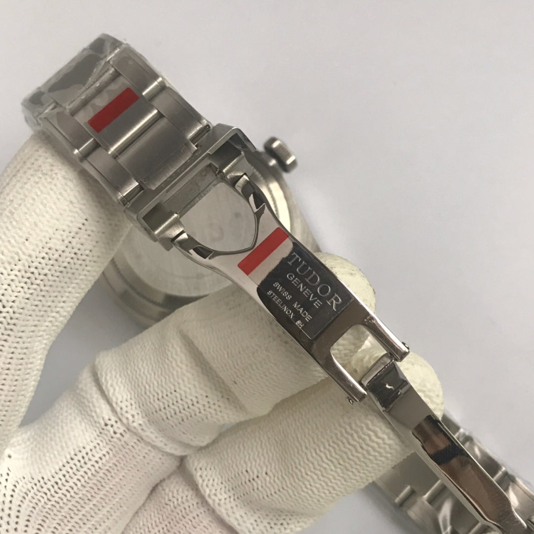 The bracelet is decorated with rivets on both sides, restoring the vintage design of the Tudor brand. The fusion of these elements highlights the watch’s rugged yet refined aesthetic.