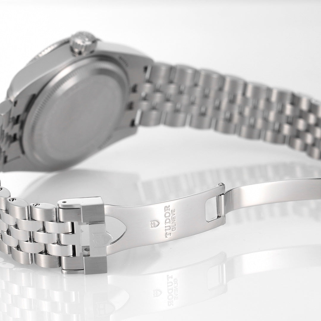 The red aluminum bezel is unidirectional and adds a dynamic touch. The crown is embossed with the signature Tudor rose logo, providing an elegant touch that elevates the brand's identity. The "T-ft" buckle features an adjustable micro-function, allowing wearers to quickly fine-tune the bracelet length by 8mm, offering both flexibility and convenience.
